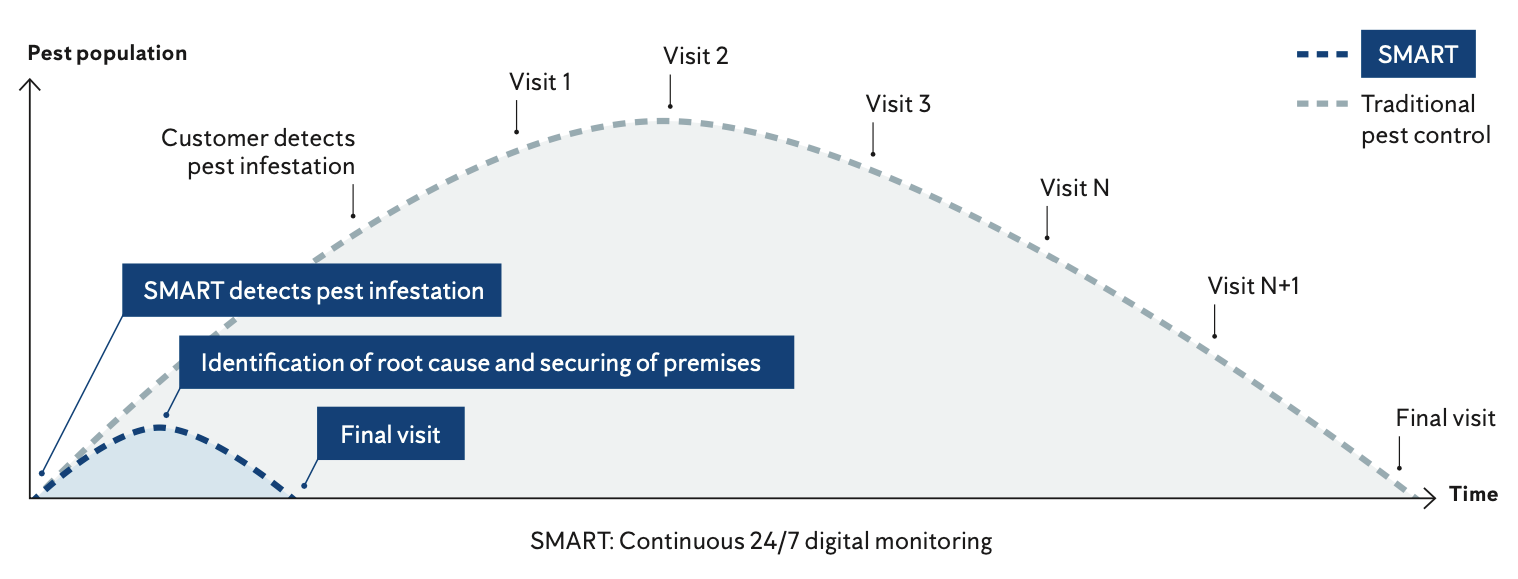 Anticimex’ SMART solutions support 24/7 real-time monitoring which enables early detection and the detective work necessary to identify pest movement. Together with sophisticated risk assessments and thorough securing of premises, this is a fundamental aspect in achieving resource efficient and effective pest control.